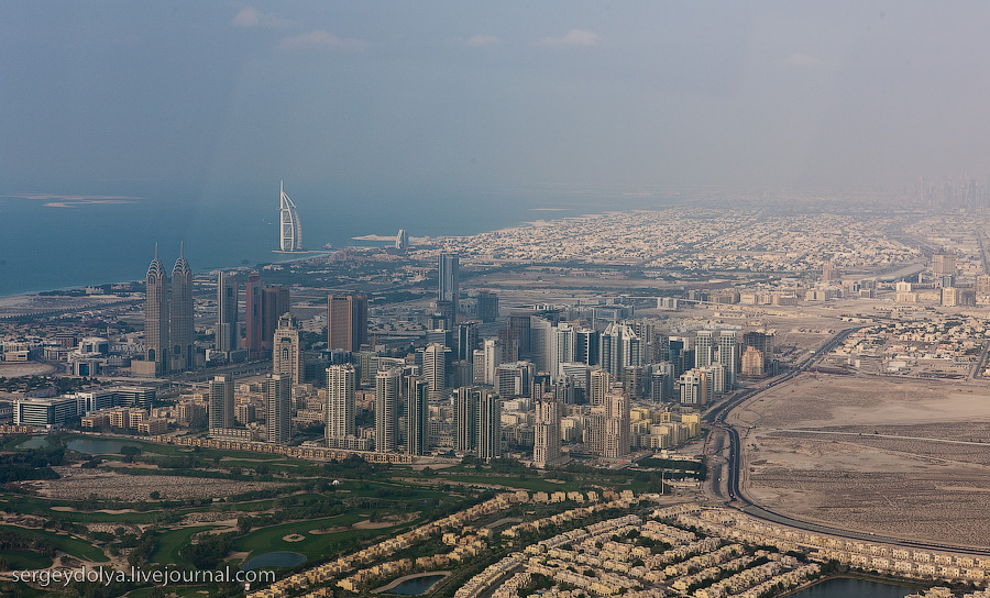 ![]() Дубай с высоты. Красивый город. Кажется, что такого не существует в реальном мире... ![]() Новые фотографии, сделанные Ахмедом Джадаллахом с вертолета Дубай Марина — район в Дубае, одна из самых фешенебельных яхтенных пристаней в мире. ![]() Вид на Бурдж Халифа (экс-Бурдж Дубай) - самое высокое здание в мире (828м). ![]() Отель Бурж аль-Араб. Здание стоит в море на расстоянии 280 метров от берега на искусственном острове, соединённом с землёй при помощи моста. Имея высоту 321 метр, был самым высоким отелем в мире, но затем, тоже в Дубае, появился отель Башня Розы высотой 333 метра. ![]() Искусственный остров Пальма Джумейра, самый маленький и самый оригинальный из трех Пальмовых островов Джумейры (Пальма Джумейра, Пальма Джебель Али, Пальма Дейра), являющихся на сегодняшний день самыми большими рукотворными островами. Вид на Пальма Джумейра и Дубай Марина (на переднем плане). ![]() Отель Атлантис. ![]() Бурж аль-Араб. А так выглядел Дубай в 91-ом году. ![]() Фото фотографа-путешественника Сергея Доли. Его же и комментарии к каждой из фотографий. В Дубае я арендовал вертолет и пролетел над комплексом World, строящейся пальмой с гостиницей Атлантис во главе, городскими небоскребами, конюшнями шейха, отелем парусом Бурдж Аль Араб, самым большим торговым центром Mall of Dubai и, конечно, рядом с самым высоким зданием в мире - Бурдж Дубай… Для прогулки я арендовал Eurocopter EC130. Вообще, он вмещает 6 пассажиров - 2 впереди и 4 сзади. Но в этом случае нельзя быть уверенным, что вам достанется место впереди. Поэтому пришлось зафрахтовать весь вертолет: Залив Дубая. На переднем плане новая зеленая ветка метро. Открытие запланировано на конец следующего года Район Bur Dubai, вдали - Port Rashid Комплекс искусственных островов The World Большие острова внизу - это Австралия. Здесь планируют построить комплекс отелей Каждый остров представляет из себя какую-то страну или материк. Южная Америка Один остров уже построен до конца и функционирует Телевик мне брать в вертолет запретили, так как я мог снять покои шейха В данный момент продано всего 30% островов (cо слов пилота) Подлетели к пальме с гостиницей Атлантис во главе Сделали круг вокруг Атлантиса. К нему ведет первая на ближнем востоке монорельсовая дорога Районы "Lakes", "Meadows", "Springs" и "Jumeirah Islands" Район Tecom Гольф-клуб шейха На переднем плане виден Mall of Emirates с огромной серебристой трубой крытого горнолыжного склона На большой территории между Dubai Marina и Бурдж Дубаем очень много промышленных построек. В будущем их собираются сносить, а на их месте хотят построить здание больше 1 километра в высоту Подлетаем к новому символу Дубая - самому высокому в мире зданию высотой 818 метров - Бурдж Дубай Огромное плоское и низкое здание за Бурдж Дубаем - это один из самых больших торговых центров в мире - Dubai Mall с гигантским океанариумом внутри. А темные круги в бассейне - это фонтаны. Каждый вечер здесь проходит фантастическое шоу фонтанов. Делала его та же компания, что и в Лас Вегасе, только с бОльшим размахом. Центральная дорога Дубая, Sheih Zaid Road, видны башни-близнецы Emirates Towers Из блога ГАЛИНЫ ШАДРИНОЙ ![]() |