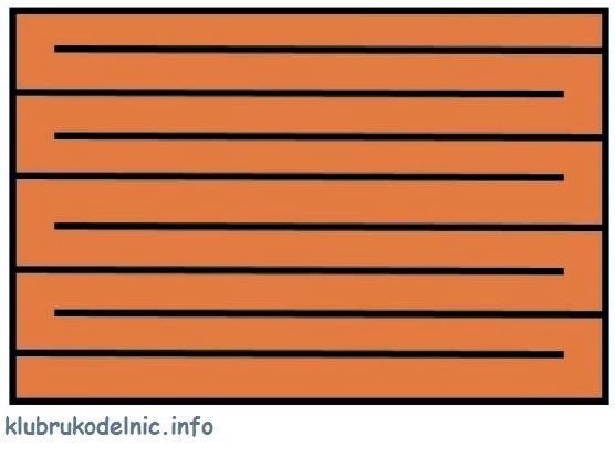 1. Полученные куски ткани разрежем на полосы шириной 1,5 - 2,5 см так, как видите на рисунке. Если ткань толстая, то полосы лучше нарезать тонкие, если тонкая, то пошире. Когда начнете вязать таким же образом регулируете толщину скрученной полоски.