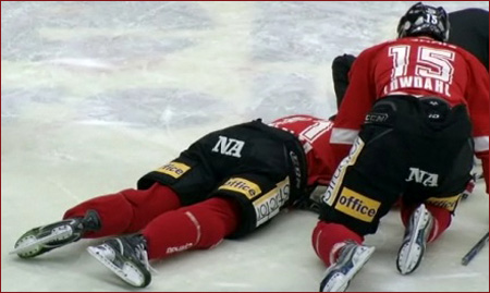 В Швеции едва не повторилась трагедия, которая год назад унесла жизнь 19-летнего российского хоккеиста Алексея Черепанова. Во время матча команд "Бофорс" и "Эребро" 26-летний Никлас Лихаген неожиданно упал на лед без видимой причины.