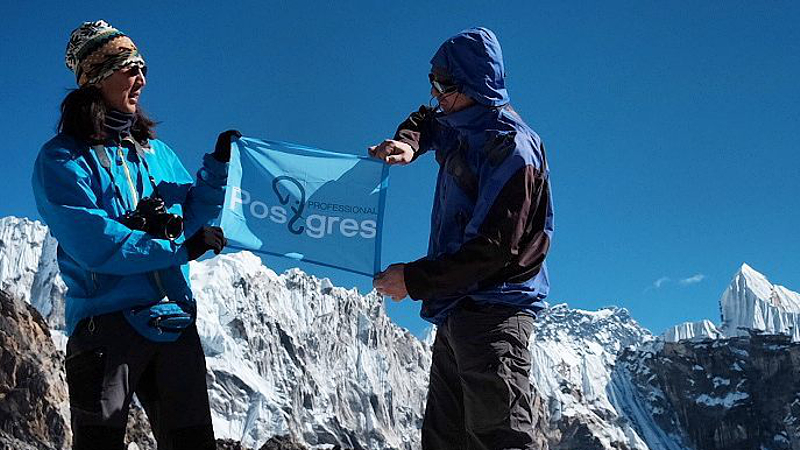 В своем путешествии от перевала к перевалу на пути к Эвересту Олег фотографирует то, что находит наиболее красивым - с ним команда верных друзей и три фотокамеры - для разных условий освещенности и погодных ситуаций. А в этот раз Олег взял с собой еще и флаг нашей компании - Postgres Professional. Сегодня этот флаг оказался на перевале Cho La на высоте 5368 метров. Событие стало поводом для фотоснимка.